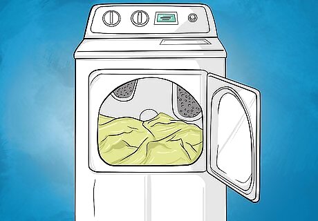 Remove dirt each month by running your drapes through a dryer. Unless the manufacturer's label specifies otherwise, you can run your drapes through a dryer once a month to remove dirt and dust. Use the "no heat" or fluff setting and dry your drapes for 10 minutes.