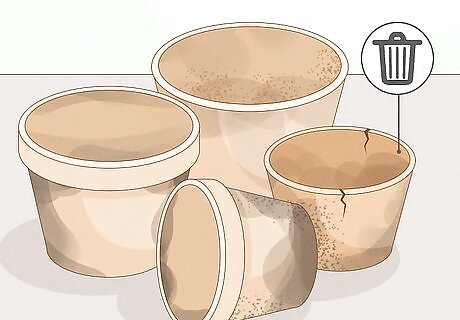 Gather all the containers that need cleaning. Throw away any containers with cracks, chips, or signs of weakness. Terracotta containers which are cracked or broken can be used as broken pieces at the base of plant containers to help with drainage.