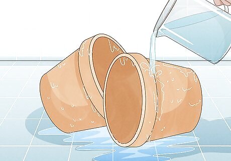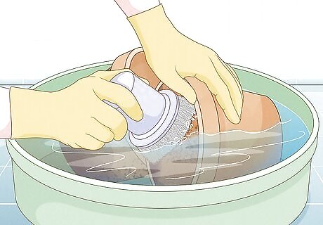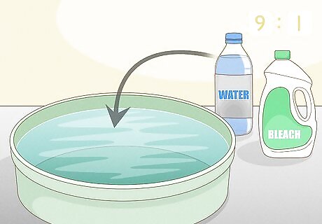 Make the bleach and water solution. Mix 9 parts water and 1 part household bleach or detergent. Using bleach or detergent will remove bacteria and fungi that could prove problematic for the new plants.