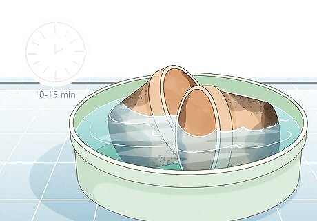Submerge the containers in the solution for 10 to 15 minutes. Check whether the residue is easy to remove. If not, soak for longer until the dirt is easy to remove. Do not be tempted to use more bleach as this can damage your containers. Let terracotta containers lie in the solution a little longer to disinfect thoroughly.