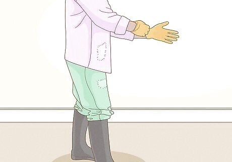 Wear appropriate clothing. Wear protective gloves. Wearing gloves is important when cleaning plant containers because you will be handling bacteria, fungi, and bleach. You do not want bleach to irritate your skin. Wear old clothes in case the bleach solution splashes on them. Also, wear goggles to avoid getting the solution into your eyes.