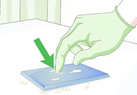 Clean the glass window. The glass window found above the tray should be cleaned as well. Some resin may be stuck onto the glass. Put on a pair of nitrile or neoprene gloves (not latex) and use your fingers to gently rub or peel off any resin. If any alcohol got onto the glass tray, use a lens wipe or microfiber cloth to remove it.