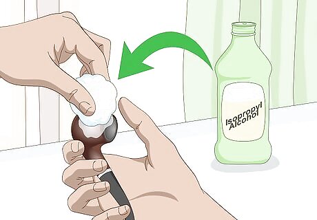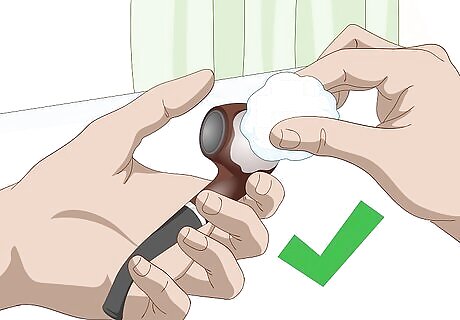 Use a plant-based cleaner. Chemical cleaners can damage a pipe or bong and are bad to inhale. Opt to use plant-based cleaners. Check the label to make sure a cleaner uses only plant based products. After using your pipe, add 10 drops of the cleaner to the bowl. If you live near a head shop, a worker there can help you find a solid plant-based cleaner for your pipe or bong.