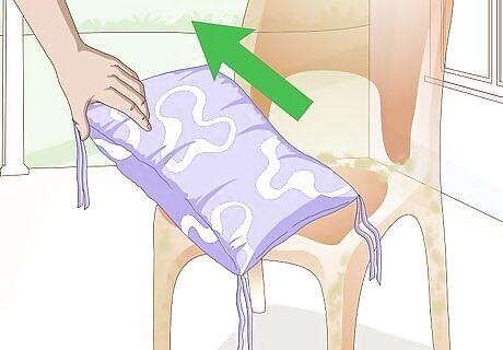 Remove the cushions. You should remove any cushions from your resin furniture before cleaning it. As you'll be soaking the furniture, cushions need to be removed to prevent water damage. Take any cushions off the furniture and set them aside.