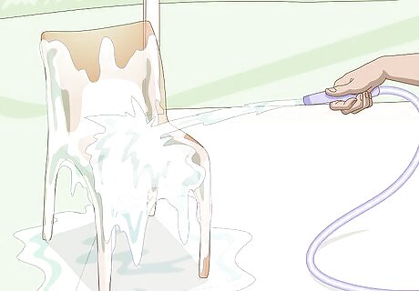 Soak the furniture in water. Resin furniture is waterproof, so it's safe to soak it in water prior to cleaning. The easiest way to to do this is to spray down your furniture with a hose. Spray your furniture until all parts are completely wet. If you don't have a hose, use water buckets to dump water over your furniture.