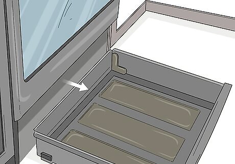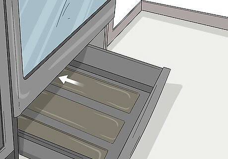 Replace the access panel or oven drawer. To do this, align the drawer rails with the guides, then slide the drawer back as far as you can. Raise the drawer front and push inwards until the stops pass over the guides. Then, lower the drawer and slide it shut.