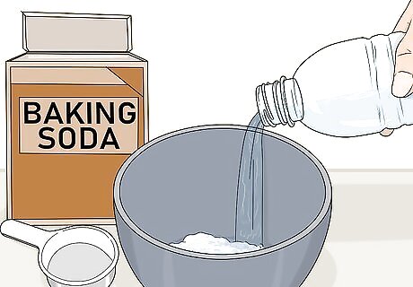 Make a baking soda and water paste in a medium-sized bowl. By slowly adding water to ⁄2 cup (120 mL) of baking soda and stirring, you can create a whitish-looking paste. Stop adding water when the paste is about the consistency of shaving cream.