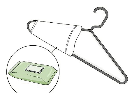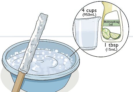Prepare the cleaning solution and assemble the cleaning wand. Mix 1 US tbsp (15 mL) of mild dish soap with about 4 cups (950 mL) of warm water in a medium-sized container to make the solution. Wrap a washcloth or dishcloth soaked in the cleaning solution around the end of the yardstick to make the cleaning wand. Then secure it with tape or rubber bands.
