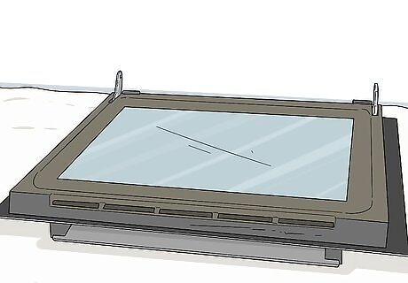 Locate the slots below the oven door. There should be about three of them. These slots lead into the space between the two panes of glass that make up your oven door, and are typically used to promote air flow throughout the oven.