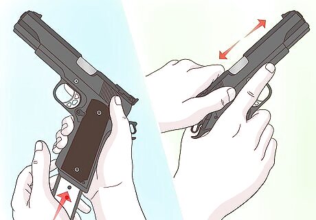 Examine the bullets and gun to make sure they are all in good working order. Use a pen light to examine the chamber, looking for fouling, rust, or other damage that could cause the cartridge case to hang up. Look at the shells to make sure they are the correct caliber and type for your firearm. There are numerous different 9mm cartridges available, like 9mm Luger, 9mm Parabellum, and .380 Auto. These are not interchangeable. If you cannot ascertain you have the correct ammo, do not reload and fire your weapon.