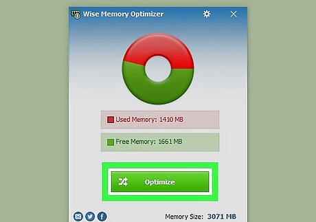 Click the Optimize button. This will clean your computer's RAM (system memory) and create extra space in your memory. You can see your used and free memory information in the app changes after optimizing.