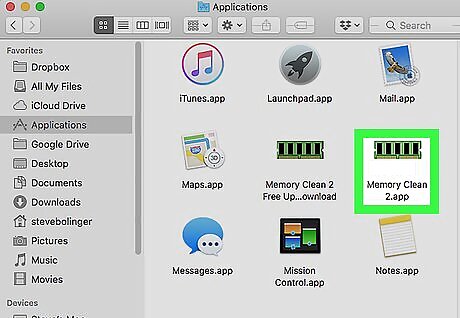 Open the Memory Clean 2 app on your computer. The Memory Clean icon looks like a computer chip. You can find it in your Applications folder or on the Launchpad. The app window shows your currently available system memory at the top. You can see a breakdown of all the apps and services using up your RAM on this page.