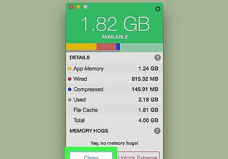 Click the Clean button. This is a blue button in the lower-left corner of the app window. It will start cleaning your Mac's RAM (system memory)