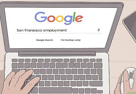 Set up informational interviews in the other city. Talking to people in your industry who live in your destination city is perhaps the best way to figure out what the labor market is like for people in your occupation. Contact a few people in your industry who are in management positions and ask if they'd be willing to discuss the prospects in the field with you. Emphasize that you're not seeking employment from them, but rather information about the industry in that area. If you haven't moved to your destination city yet, you can typically conduct informational interviews over the phone. You may also be able to simply email the person questions. Plan your questions ahead of time and write them down so you sound prepared and professional. Even though you're not technically interviewing for a job, you still want to make a good impression. Suggested Questions to Ask: What are the salary ranges in this field? Is this field growing in your location? How much demand is there for people in this field? Do you have a frequent turnover of employees?