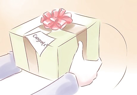 Send a gift. If the occasion is special enough to merit a gift, something thoughtful and not too expensive is usually the right way to go. Choose a gift that lets the person know you want to celebrate with them and send it with a note of congratulations. You can't go wrong with flowers, whether you want to mark a professional achievement or a personal landmark. Food items are also usually welcome. Pick a universal favorite, like chocolates or fresh fruit. A bottle of wine or good bourbon might be a good choice. For a high school or college graduate, a small amount of cash will probably be appreciated.