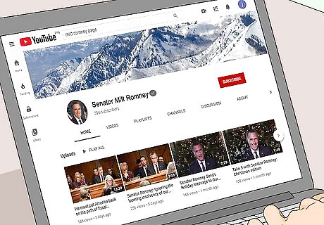 Visit Romney’s YouTube page to leave comments for him to see. Visit Mitt Romney’s YouTube channel at https://www.youtube.com/channel/UCEnG85eZBypPpcmbKUJNdng. Here you’ll find all of the videos he has posted as well as an open Discussion page where you can post a comment. Click on a video link to leave a comment on that specific video. Look for the black checkmark next to his name showing that you’re looking at his official YouTube page.