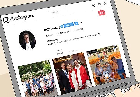 Find Mitt Romney on Instagram to comment on his posts. Use the Instagram app on your phone or other device to find Mitt Romney’s page. His Instagram handle is @Senatorromney, but you can also find him by typing “Mitt Romney” into the Instagram search bar. Comment on a photo he’s posted or send him a private message by clicking on “Message.” Look for the blue check next to his name to show that it’s his real account. Avoid posting negative comments.