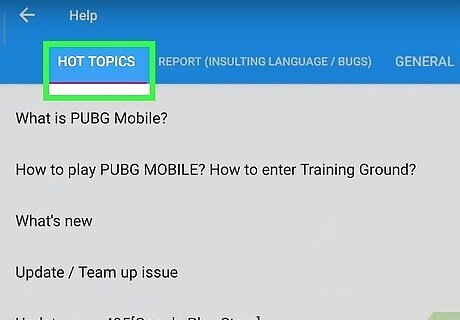 Look for your question in the list of common topics. Scroll through the main topics listed on the page to see if someone has had a similar issue as you. Tap on the category that best matches the problem and read through how to fix it. Follow the instructions completely to see if it resolves the issue you’re having. If you want to talk directly to a customer support person, you can skip this step. Some of the common topics include creating or recovering an account, getting a refund, and reporting other players. You’ll only find the most common issues listed on the support page, so they may not have a topic directly related to your problem.