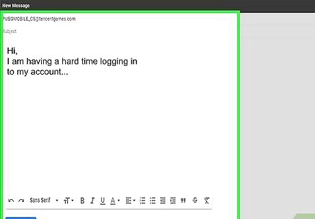 Send an email to [email protected] stating your issue. Write an email that includes your in-game nickname, the operating system you use, and the problem you’ve been experiencing. Try to be as detailed as possible in your email so the representative understands the full scope of the problem. Make sure you spelled everything correctly before sending the message, and wait for a response, which may take a few hours. You may get an automatic response right when you send the email, but it may not address the issues you sent. You can send an email to customer support no matter where you live in the world.