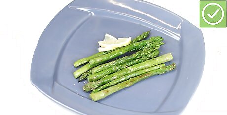 Season the asparagus. Sauteed asparagus is delectable with lemon juice and butter drizzled over the top. Season with salt and pepper to taste.