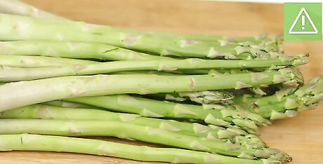 Choose thick or thin spears. Thin asparagus cook quickly and tend to have a crisp exterior and soft center, while thick asparagus take a bit longer to cook and have a bulkier texture. Either type of asparagus is excellent no matter how you cook it, with the main difference being the final texture. Just be sure to choose asparagus that's fresh, green and firm - not floppy or discolored - when you're picking it out at the market. Thick asparagus often has a slightly woodier stem, which you may want to peel before cooking. To peel an asparagus, just take a vegetable peeler and lightly stroke it from the middle of the asparagus to the base. Thin asparagus is a good choice for use in salads or stir fries.