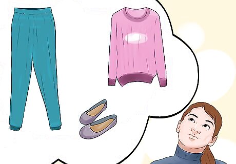 Express your personal style. If you have to use braces or other devices during the day, you may feel as though your style is defined by your illness. It is easy to find clothing that is both easy for you to put on while still looking good. Instead of dealing with buttons, try putting on a pullover sweater. These will be easy for you to take on and off. Plus, they come in a range of styles. You can choose one with your favorite band, a funny saying, or a bright print. You can still buy cute shoes, as long as they are flat and provide good support. You might want to put inserts in them to help with arthritis in lower extremities. You should, however, avoid wearing heels. If you find it difficult to button or zip up pants, try to find pants that have an elastic waistband. These come in many styles — you can even find jeans with elastic waistbands. If you are a girl, you may also try wearing leggings or tights. These can be worn under tunics or dresses, and they add some depth to your outfit. Guys should look into joggers made of different materials, like twill.