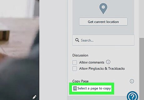 Scroll down and click SELECT A PAGE TO COPY. It's at the bottom of the left column under the ″COPY PAGE″ header. A list of pages will appear.