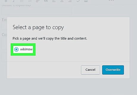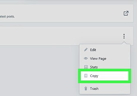 Open the destination page. This is the page that you'll be copying another page to--the page that will receive the copied content. If you're creating a new page, click Add next to ″Pages″ in the left column.