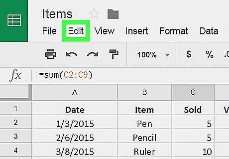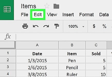 Click Copy from the edit menu. You can also right-click a cell and select Copy.