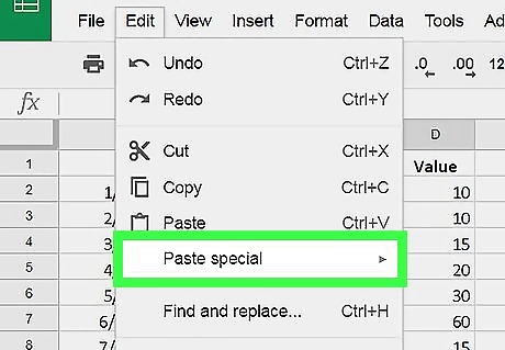 Select Paste Special. You can also right-click the cell you want to paste in and select Paste Special.