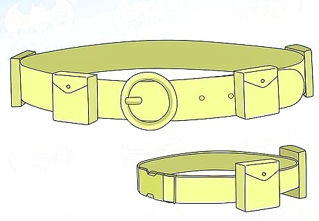 Purchase or make a yellow utility belt. Add the bat symbol to the center. You can use a military pouch belt as a base. Spraypaint or dye it yellow (khaki/tan works best).