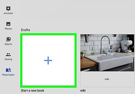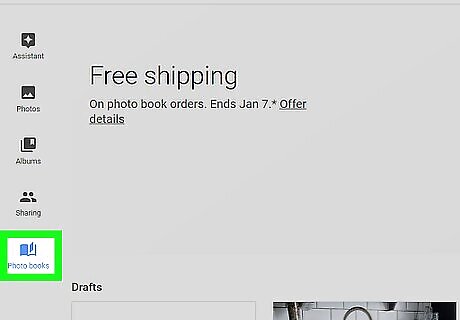 Click Photo books. It's the icon that resembles an open book on the bottom-left of the page