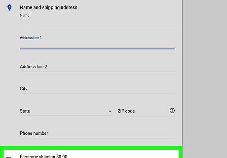 Select or add a shipping address. Click one of the addresses associated with your Google account or click Add shipping address to add a new one.