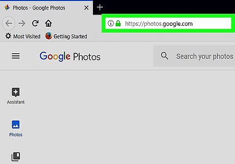 Go to https://photos.google.com in a web browser. Log in to your Google account if you aren't logged in automatically.
