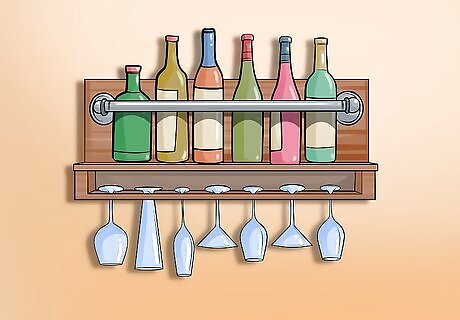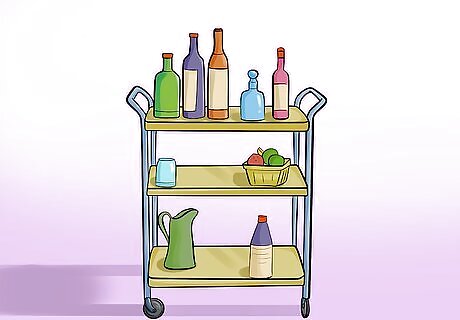 Choose a bar cart to make any space into a makeshift bar. Bar carts are perfect for extra small bars because they hardly take up any space. You have many options in terms of size and design. Make sure you choose a cart with at least two levels, one for alcohol and one for glassware. Bar carts are easily moved, so it’s possible to set up a bar for a short time and move the cart when you don’t need it anymore. Move it out to the patio or deck for summer cookouts. If possible, be sure to choose a cart that comes at least up to your waist. You and your guests don’t want to have to bend over to mix up a drink.