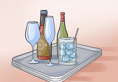 Include a handful of mixers in your drink selection. While some people take their alcohol straight, others prefer to cut their alcohol with something gentler or mix cocktails. Club soda, orange or cranberry juice, tonic water, 7 Up, and Coke are common mixers to have on hand. If necessary, you can store these in the kitchen and only set them out when necessary. Since some mixers must be kept cold and don’t last a long time, you don’t need to always keep these stocked. Buy them when you know you have guests coming over.