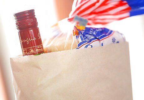 Get a basket. There are wonderful ones to be found at craft stores, gift stores (especially those that sell wine packages), even some specialty grocery stores carry them. Showing up with a nice bottle of wine and food wrapped in plastic bags from the grocery store is just not romantic!