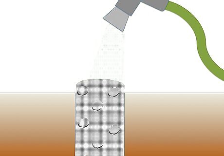 Cut screening to fit once around the outside of the PVC riser. Use a staple gun to secure. The screen will help keep dirt and sand from seeping through the holes in the PVC pipe (ultimately filling your hole back up with dirt), but will allow water to drain properly.