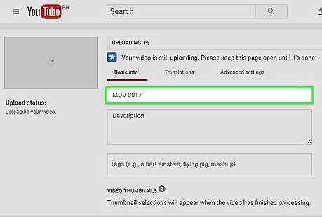 Give your video a name. You can't upload something if you can't give it a name! The titles of your videos are the trigger to earning views, likes, comments, and even subscriptions at times.