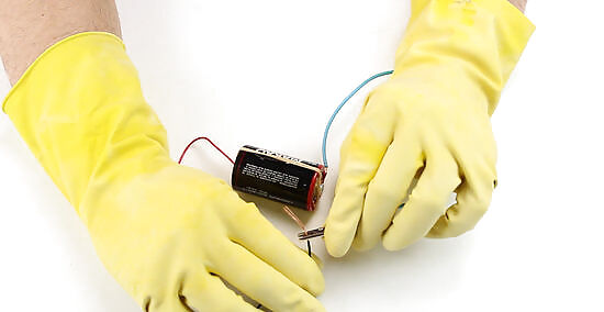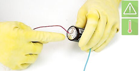 Use gloves when handling your magnet. Always use gloves when you begin experimenting with your magnet. Wires can get hot when in use. You want to make sure you do not burn your hands when handling your electromagnet. This is especially vital if you're working on strengthening your magnet. Electromagnets get hot as their strength increases.