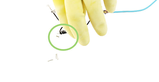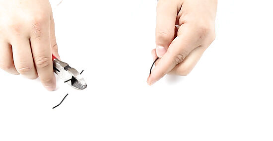 Remove the insulation from the copper wire. Copper wires are usually coated in a layer of plastic for insulation purposes. This is to protect users from electric shock. However, the battery cannot transfer electrons to the wire through the insulation. The coating needs to be removed. Using your wire strippers, remove a few centimeters of insulation from each end of the wire. Wire clippers look like a pair of scissors with a hole cut out in the middle. You feed the wire through this hole and pull the clippers across the wire to strip the insulation. You should get a wire stripper that's small enough to strip a very small bit of copper wire.