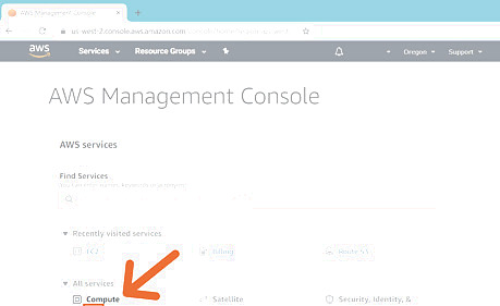 Go to your AWS Management Console and find EC2. It should be on the first column on the left, labeled "Compute."