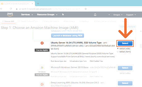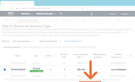 Choose what type of server you want. If you aren't going to do anything big, then the t2.micro, which is free, may be enough for your needs. Once you've made a decent selection, click Review and Launch.