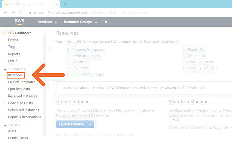 Navigate to your instances. Look on the left menu under "Instances," and click Instances.