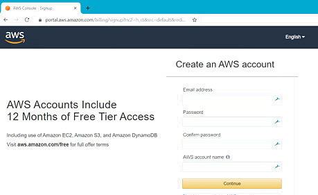 Create or log in to your Amazon Web Services account. Make sure to write down the email address, user name, and password that you use.