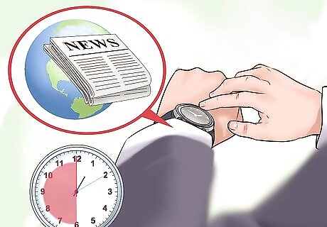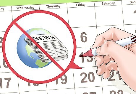 Schedule a specific amount of time to watch news. Set a maximum amount of time that won’t interfere with other activities. Typically 30 minutes of news can provide you with ample coverage; any more than that and it gets repetitive. Create a schedule of all your daily events. Include news reading, viewing or listening as a small portion of each day, and no more. Setting limitations and tracking your time on a daily schedule or planner will help you hold yourself accountable to your goal. Apply the same rules to internet news. Give yourself a chance to break your news addiction by limiting your online news reading to set times of the day. If you see headlines, don't click to go there unless it's during your allotted time.