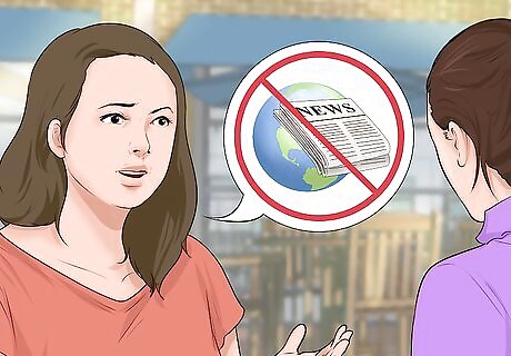 Strengthen your support system. Relationships must be nurtured to survive. Social support is essential for your physical and psychological health.If you’ve been handcuffed to the news for any period of time, your relationships have likely suffered. Reach out to others to build or repair your relationships. Until you are 100% confident with the changes you have made, you will need the support of others. Engage in real and online social situations that expand your interests beyond news stories. For example, take a music lesson, volunteer for a project to help animals, or children in need. It will restore the idea that there is more to life than news. Shared interests bring people together. Investigate and join a group that might interest you. There might be a comedy groups, or city recreation league that will provide the opportunity to meet new people.