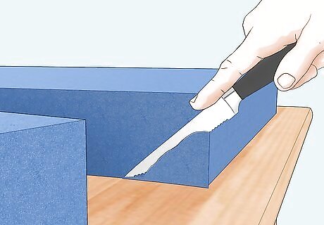 Clean up any uneven cuts, if you'd like. If you kept your knife straight up and down on each cut, the foam should be cut cleanly. If there are any chunks or ragged pieces on the edge of the foam, however, you can use your knife to trim them away. If you're planning to cover the foam with fabric, a little bit of unevenness is probably fine.