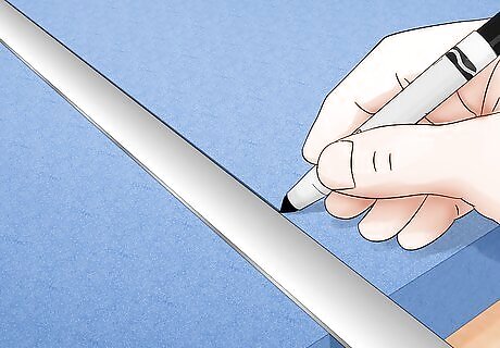 Mark your cuts with a permanent marker. Use the marker to trace the shape you want your finished foam pad to be, moving the tip lightly across the foam so you don't cut into the pad. To make a straight line, use a straight edge like a drywall square or a piece of cardboard. If the cuts will be more detailed, you might want to print out or draw a template and pin it to the foam before you trace your lines. If you'll be working with a thick piece of foam, you may want to mark your cuts on the top, sides, and bottom. That way, it will be easy to make sure your cuts are straight all the way through the pad. Remember, it's better to err on the side of cutting the pieces a little larger, rather than having them be too small. The foam will compress into place if it's a little too big, or you can cut off more if you need to. If you're cutting 2 shapes out of the same piece of foam, avoid having them share a side, just in case you make a mistake. For instance, if you're cutting 2 cushions from the same foam pad, you'd want to put a gap of at least 1–2 in (2.5–5.1 cm) between the squares.