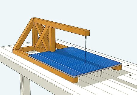 Try a hot wire cutter for horizontal cuts, but use caution. Hot wire can easily slice through foam, and many people prefer them if you need to cut large foam pads into horizontal slices. Hot wire cutters run an electrical current through a wire that's held taut by a frame, and you just have to push the wire through the foam. However, there's some concern that this technique might produce toxic fumes from heating up the foam, so be sure to work in a well-ventilated area if you choose this technique. In addition, if you move too slowly or you pause while you're cutting, you might melt the foam, causing it to harden and possibly become misshapen. Hot wire cutters are only safe to use on foam made of polystyrene and polyethylene. Do not use them to cut foam made of polyurethane—the fumes produced would be very toxic. Be very careful not to touch the wire—it will burn you.